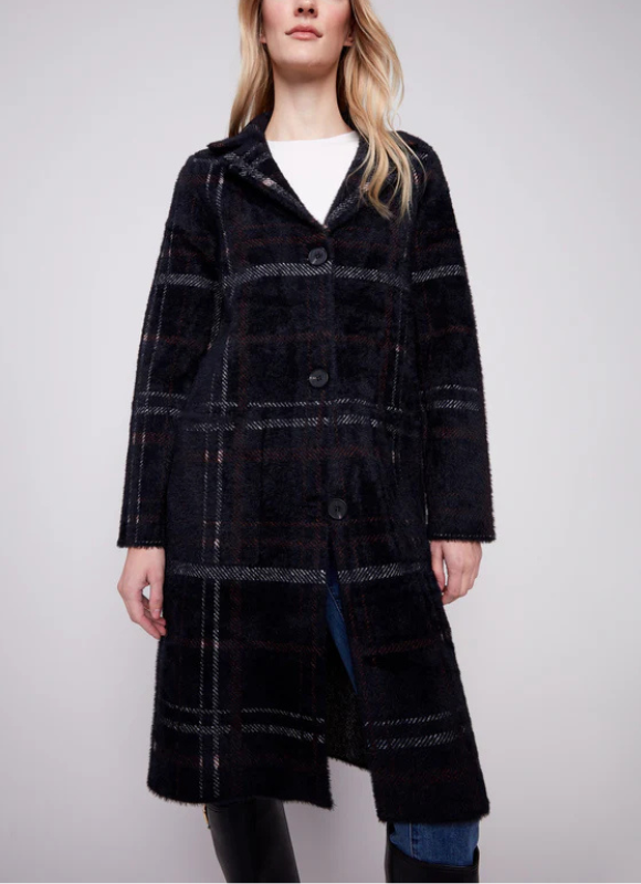 Description: Embrace elegance this fall with our black Long Plaid Knit Coatigan! This chic blend of comfort and style features a mocha plaid pattern and a flattering lapel collar. Perfect for cozy evenings or crisp autumn days, this button-front coatigan will quickly become a wardrobe staple.
