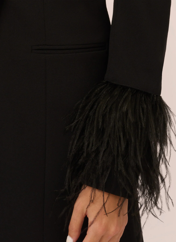 Aidan by Adrianna Papell Knit Crepe Long Sleeve Blazer Dress With Feather Trim