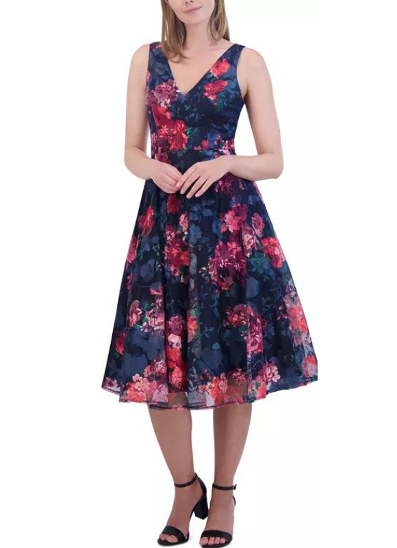 Eliza J Floral Print Sleeveless Fit & Flare Dress