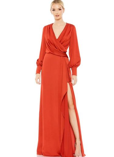 Mac Duggal Draped Bishop Sleeve Charmeuse Gown