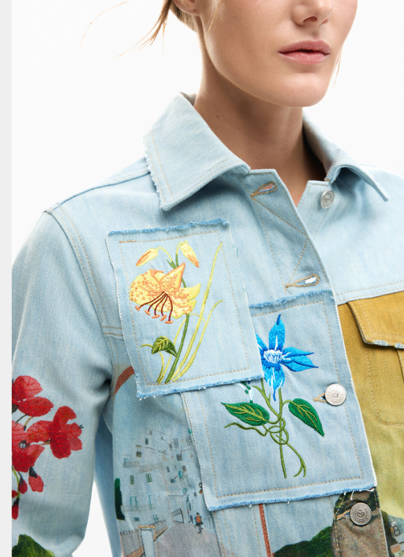 Description: A Regular-fit denim jacket with embroidered patches and a print inspired by the Amalfi coast.