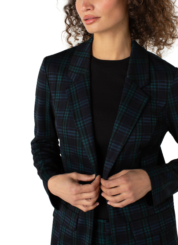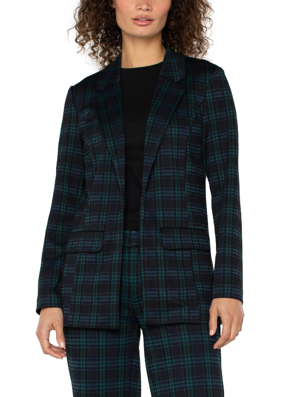 Description: A modern take on a timeless pattern. This boyfriend blazer in Black Watch Plaid combines tailored sophistication with a relaxed fit for effortless versatility. The rich plaid brings a heritage feel that pairs seamlessly with denim, trousers, or the matching pant.