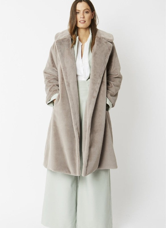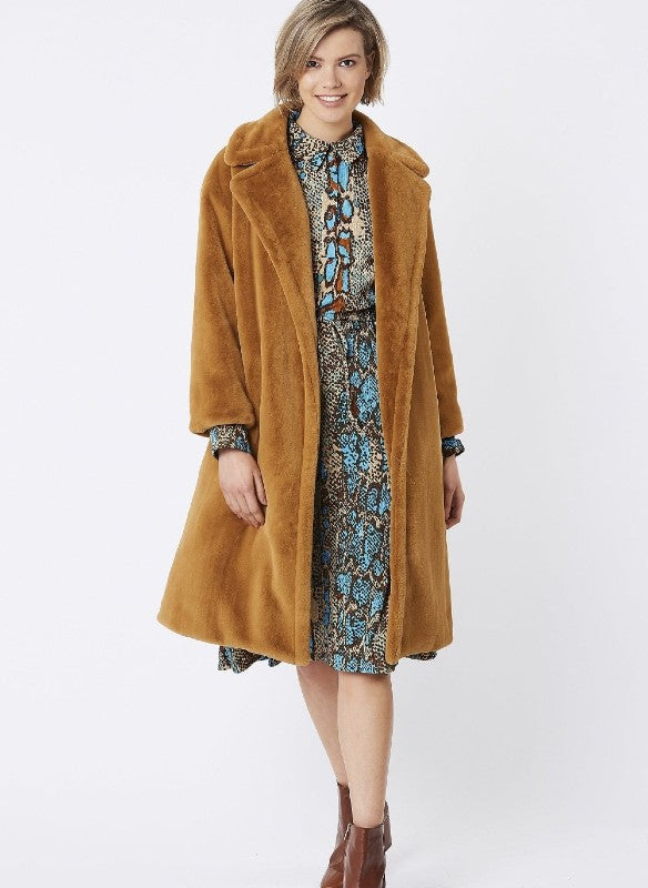Jayley Faux Fur Midi Shaved Shearling Coat