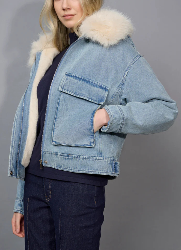 Picadilly Faux-Fur Trim Zip-Front Denim Jacket