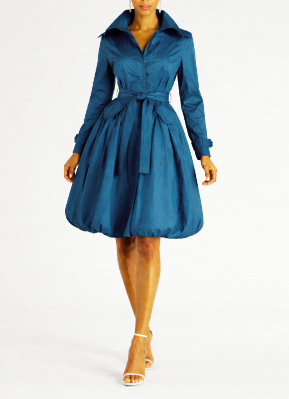 Description: Classic bubble dress Trench coat, water resistant; fully lined, zipper front, two pockets