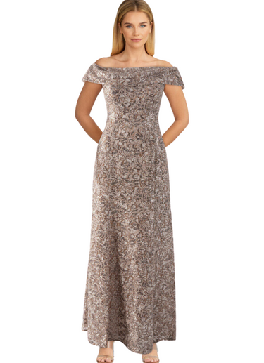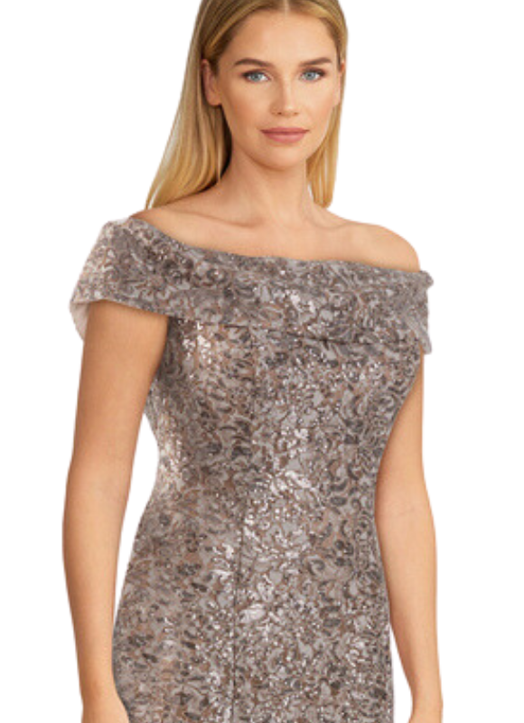 Description: Body hugging silhouette, off the shoulder beaded dress