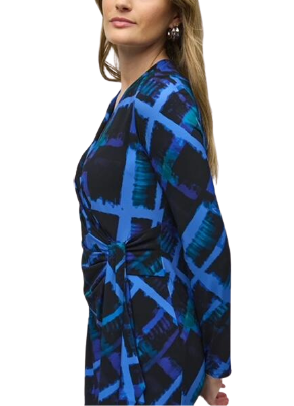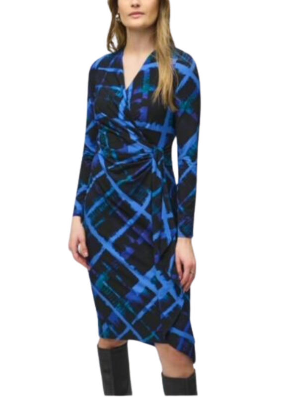 Description: Adorn yourself in pure elegance with this silky knit dress. This contemporary design presents an alluring wrap neckline with undeniable appeal. A stunning abstract print drapes the garment to elevate its refined look.
