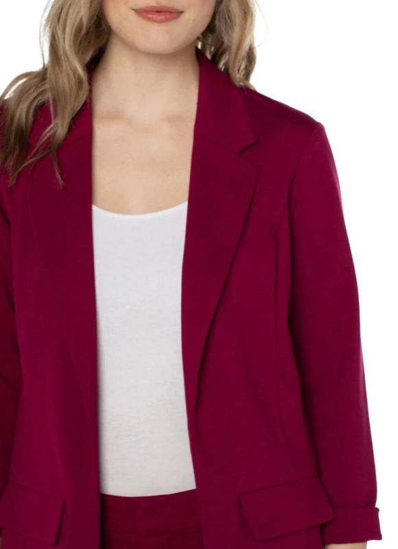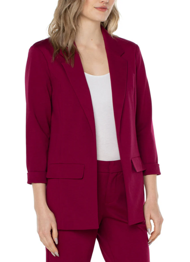 Description: This classic boyfriend blazer is sleek, sophisticated and versatile for day or night. This fabulous blazer pairs beautifully with denim or make it set with the matching trouser for a chic look! Princess dart styling, two front flap pockets and sleek modern style and a relaxed fit.