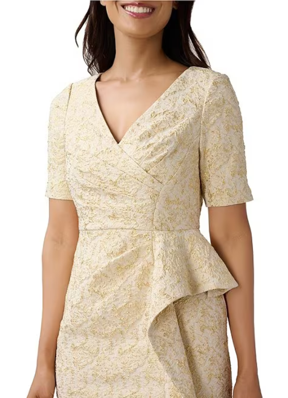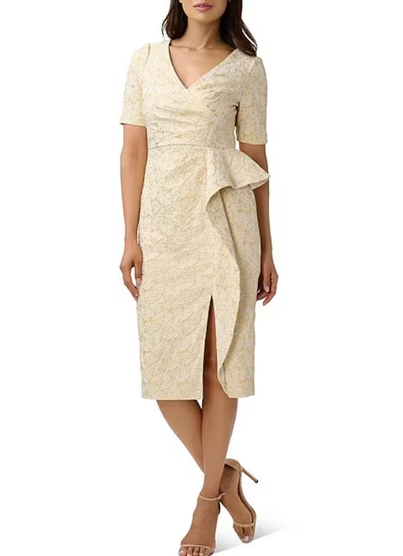 Aidan Mattox V-Neck Short Sleeve Ruffled Sheath Dress