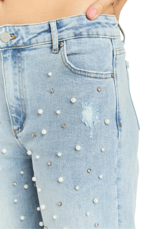 Tractr Rhinestone & Pearls Straight Leg Jean